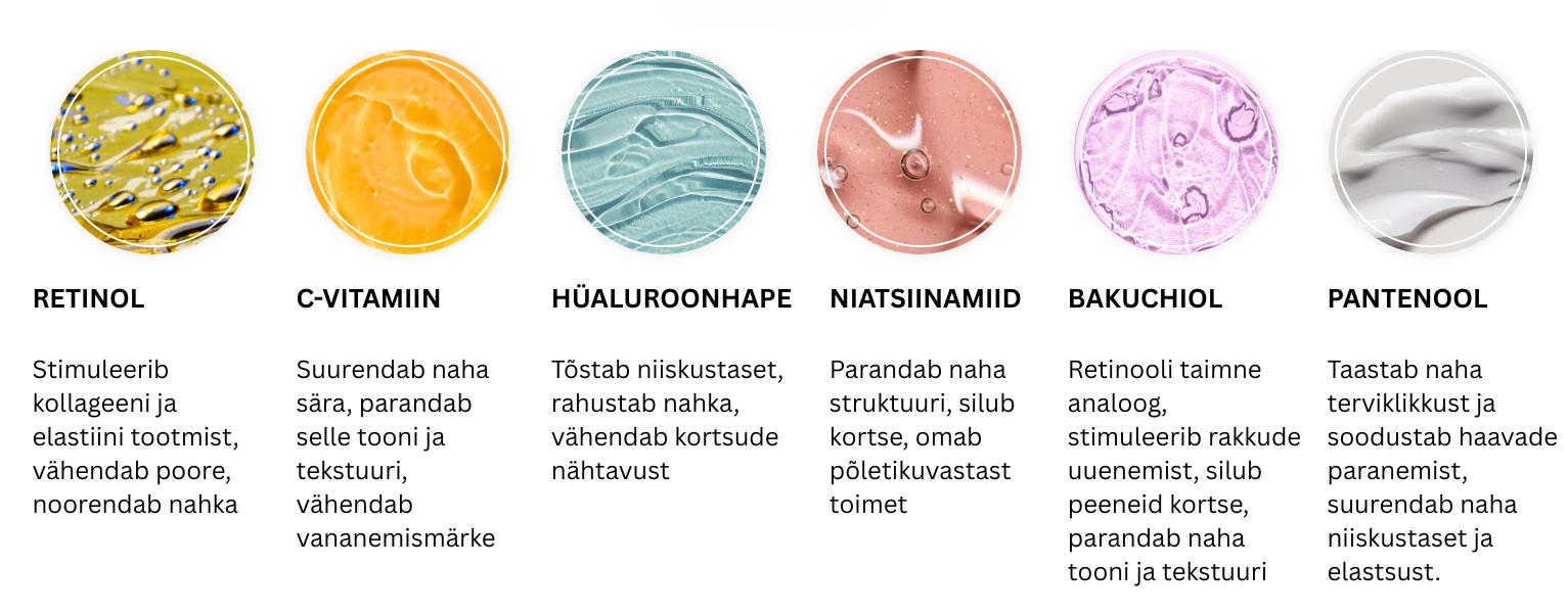 - Intensiivne hooldus – sügavniisutavad kreemid, toitvad kreemmaskid ja SPF-kaitsega tooted pakuvad tugevdatud hooldust ja kaitset.