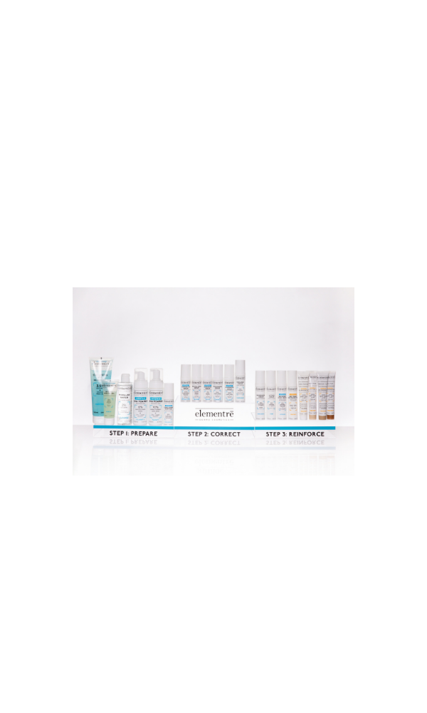 The stand consists of three labeled sections, allowing products to be placed according to their purpose (Steps 1, 2, and 3).